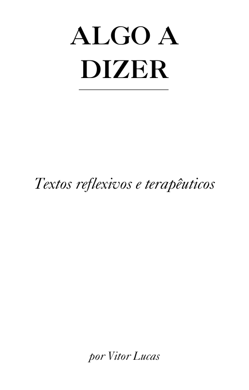Algo a dizer trata-se de textos reflexivos e terapêuticos. Originalmente pensados para minha newsletter, os textos foram compilados e agrupados para atingir o seu fim que é fazer as pessoas refletirem, e não somente, mas serem uma terapêutica em palavras, isto é, uma forma de alcançar várias pessoas e estas serem ajudadas.